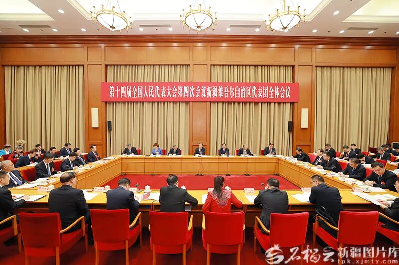 3月5日下午,参加十四届全国人大四次会议的新疆代表团举行全体会议,审议政府工作报告。