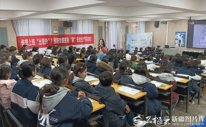 工伤预防“六进”活动走进新疆鑫金盾技工学校东校区,为200多名大学生带去沉浸式工伤预防宣传。