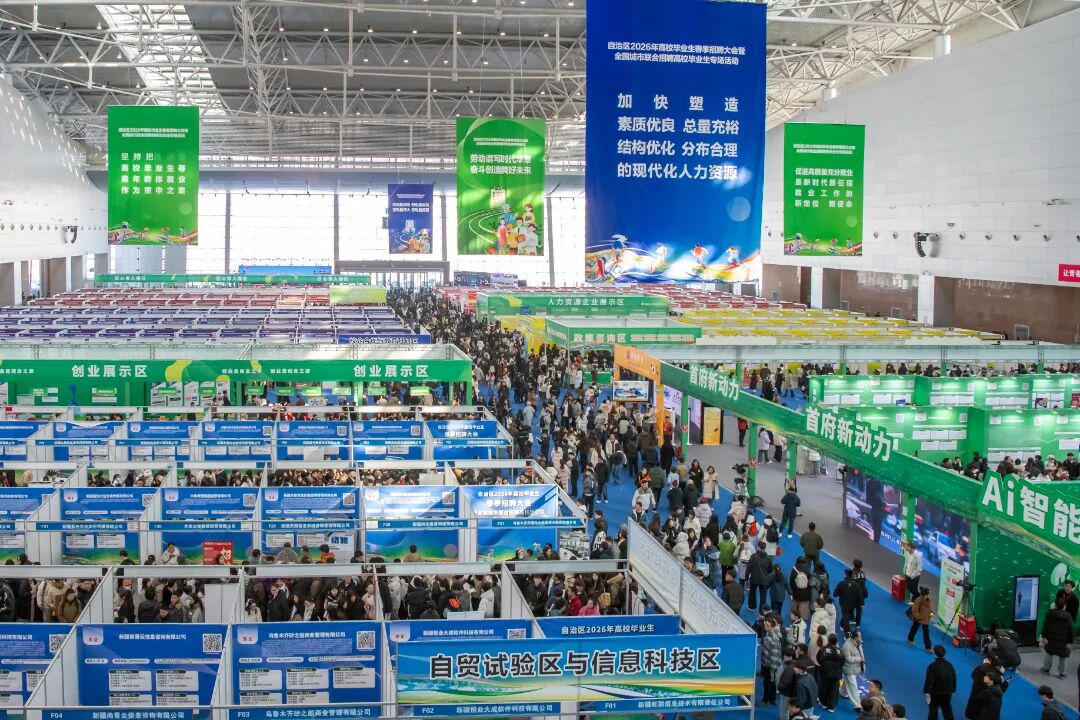 紧扣自治区产业布局与发展需求,大会精心设置六大特色招聘展区。其中,“首府新动力”专区首次惊艳亮相,深度对接乌鲁木齐市“5+2”现代工业体系与“6+8”现代服务业体系,以产业链集中布展、本土化精准适配模式,让求职者一站式尽览首府优质产业资源,成为产教融合、产才对接的实践阵地。同时,新兴产业与先进制造区、现代服务与商贸物流区、农业与能源资源区、校企合作与教育科研区、自贸试验区与信息科技区特色展区,为青年人才开辟多元化、高质量就业新赛道。