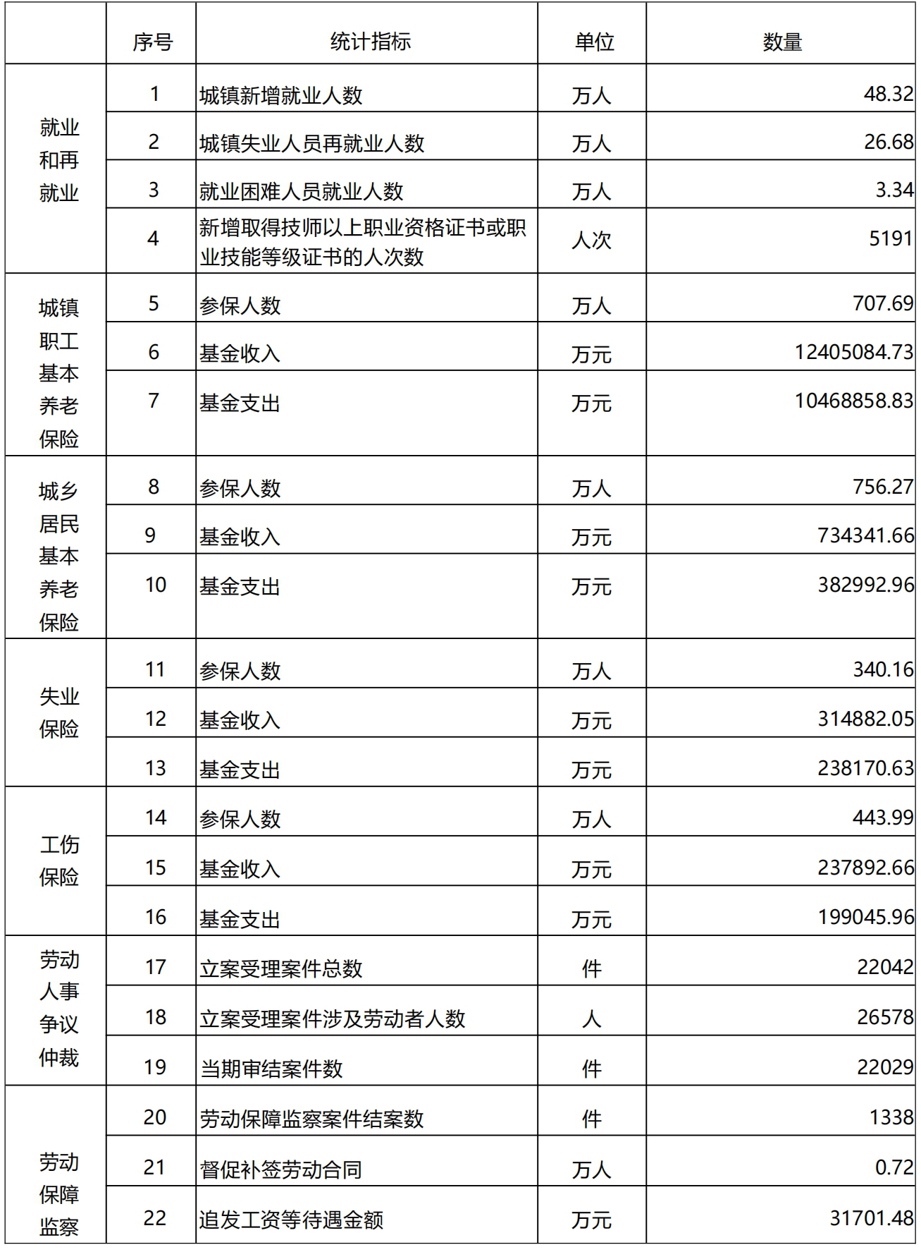 本表数据来源于人力资源和社会保障统计调查制度和社会保险基金财务会计制度。