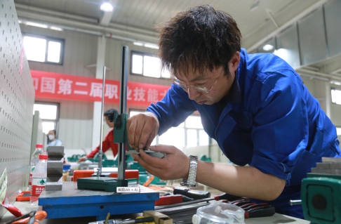 在装配钳工比赛现场,选手需要完成机械装条和零件加工两个竞赛内容。安装、调试、检测......选手有条不紊地忙碌着,以饱满的热情、专注的态度、拼搏的精神赛出风格、赛出水平。在机电一体化比赛现场,每队两名选手组成一组,团结协作完成设备组装、编程设计与调试,在激烈角逐中展现不断进取、不断钻研的职业风采,以高超的技能本领书写出彩人生。