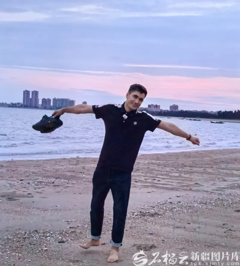 11月2日,下班后的艾克拜尔·艾麦提来到泉州市附近的海边放松。石榴云/新疆日报记者马蓓摄