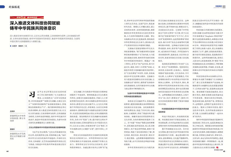 深入推进文体科技惠民行动,以文化认同为根基、以体育精神为纽带、以科技赋能为桥梁,文体科技协同赋能,铸牢中华民族共同体意识、推进中华民族共同体建设,为谱写中国式现代化新疆篇章注入磅礴力量。