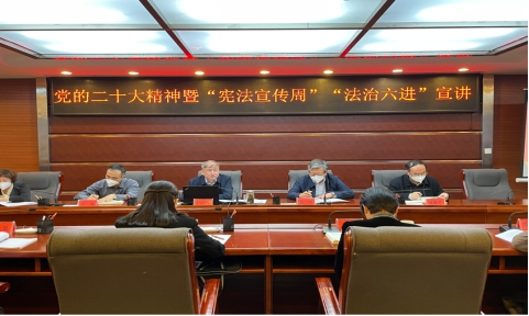 12月8日下午,自治区人力资源和社会保障厅以“学习宣传贯彻党的二十大精神,推动全面贯彻实施宪法”为主题,以现行宪法公布施行四十周年为重点,开展“宪法宣传周”“法治六进”宣讲活动,自治区人力资源和社会保障厅厅长帕尔哈提·加拉力进行了法治宣讲。全厅干部职工采取“线上+线下”全覆盖模式,积极参加宣讲活动。