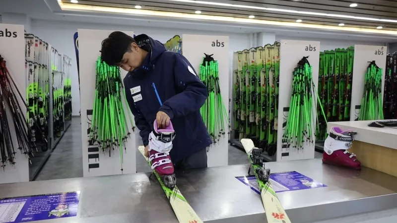 11月6日,在阿勒泰将军山滑雪场的雪具大厅,今年通过专场招聘会入职的滑雪教练员对雪板、雪鞋、头盔等装备进行细致检查,他们调试雪板固定器角度,仔细擦拭雪鞋内胆,逐一核对装备编号与完好度,确保每一套雪具都能安全投入使用,以专业姿态迎接即将到来的雪季客流高峰。